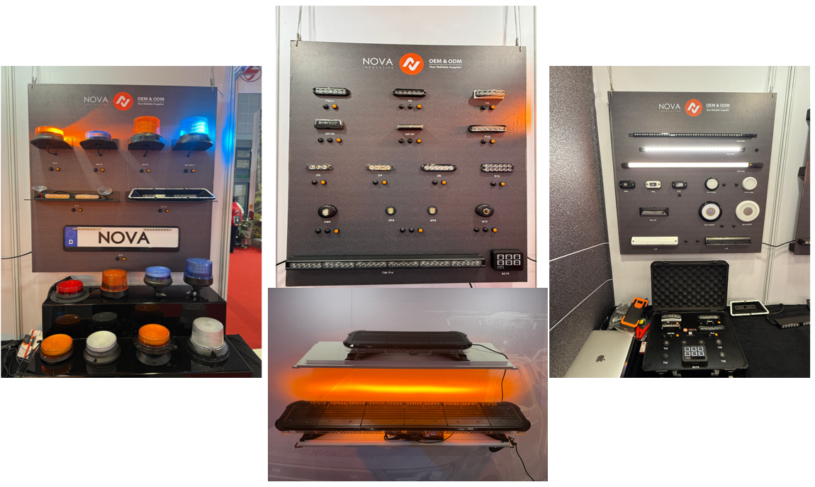 नोभा वाहनले यसको प्रमुख आपतकालीन चेतावनी प्रकाश उत्पादनहरू प्रदर्शन गर्यो, जसमा: